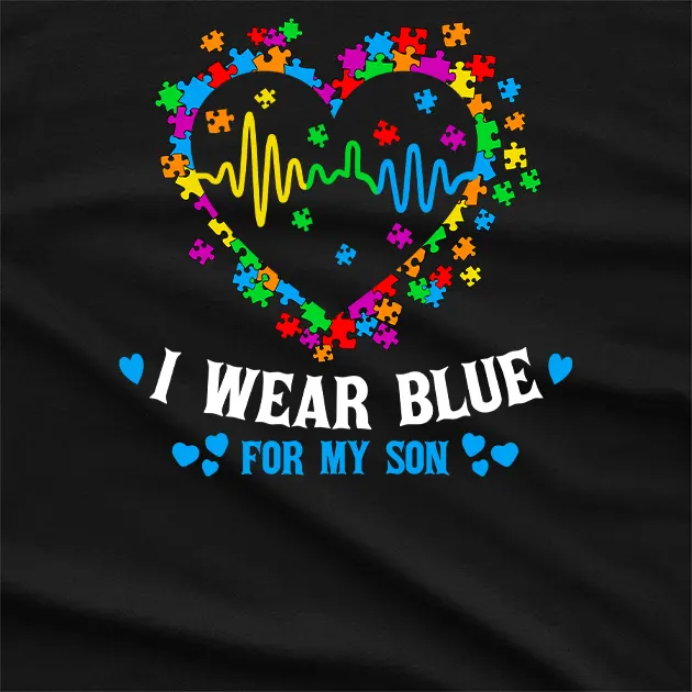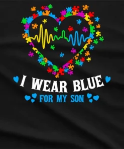 Show support with our I Wear Blue For My Som Autism Day T-Shirt wearing blue for your son on Autism Awareness Day, expressing love and solidarity.