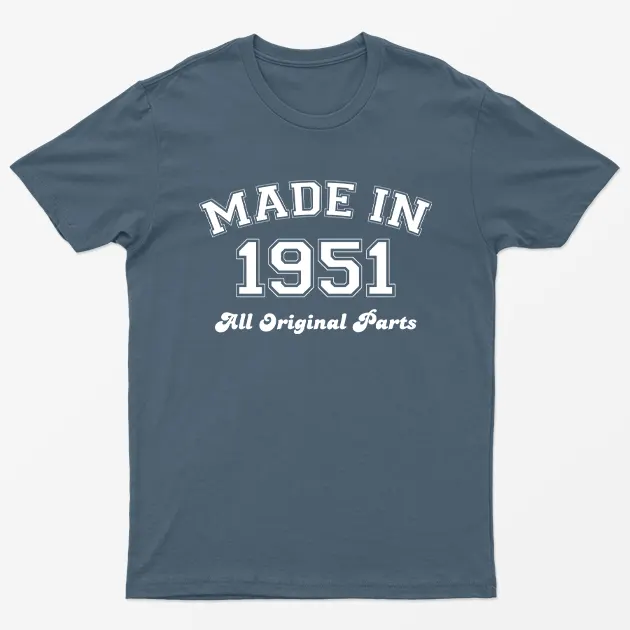 Discover the perfect Made in 1951 All Original Parts T-Shirt 73rd Birthday Gift. Celebrate the journey with this unique tee.