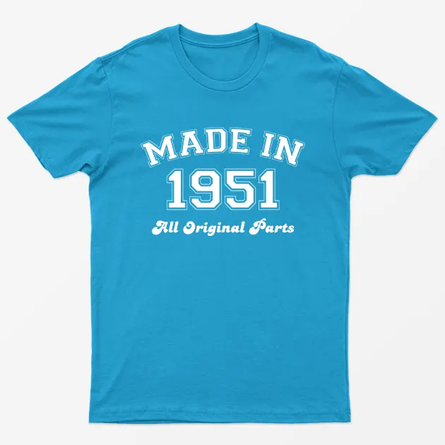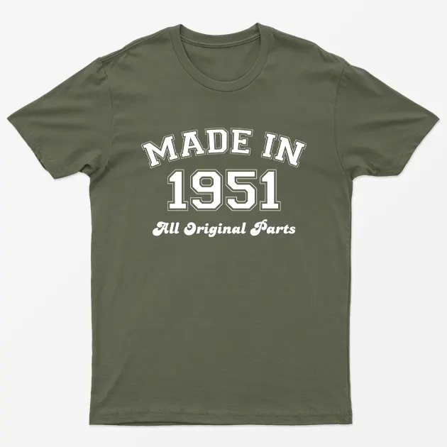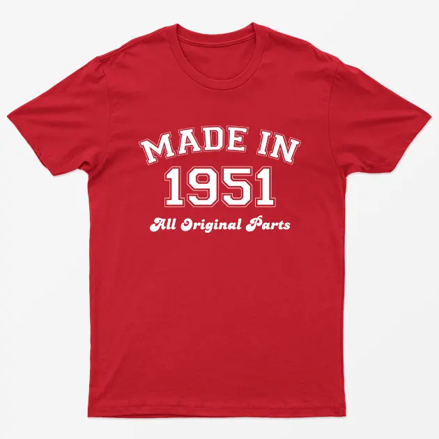Made in 1951 All Original Parts T-Shirt 73rd Birthday Gift