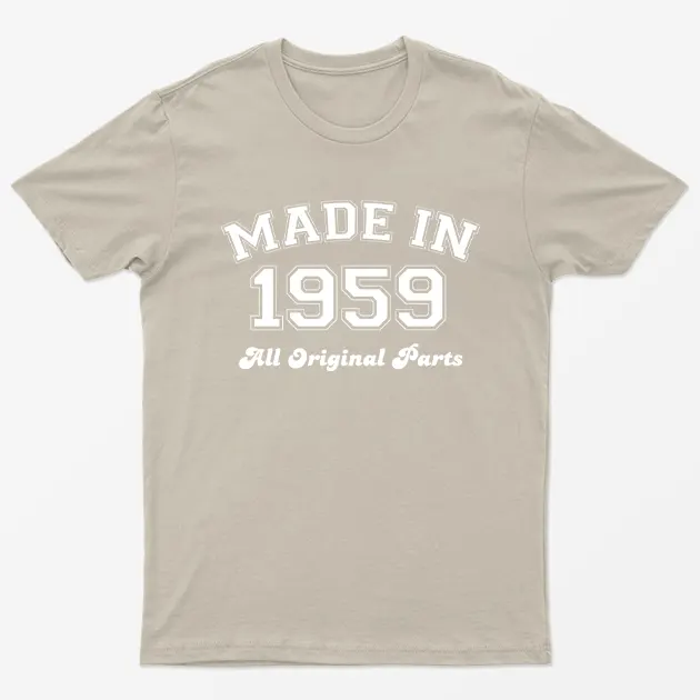 Embrace 65 years with our Made in 1959 All Original Parts T-Shirt 65th Birthday Gift, a stylish and sentimental 65th birthday gift.