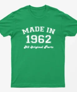 Made in 1962 All Original Parts T-Shirt 62nd Birthday Gift