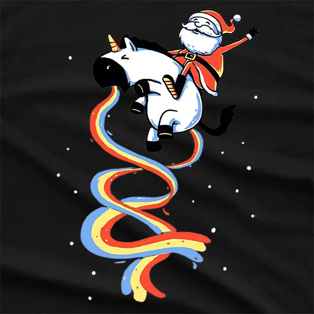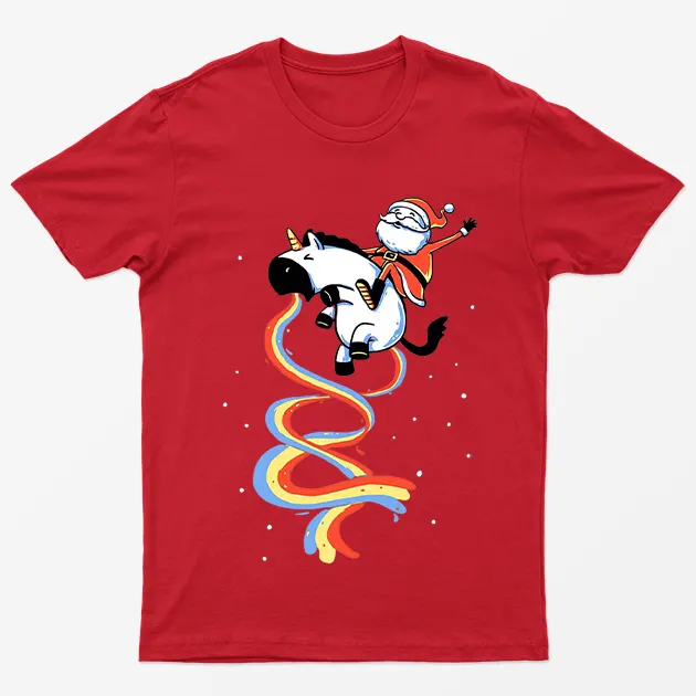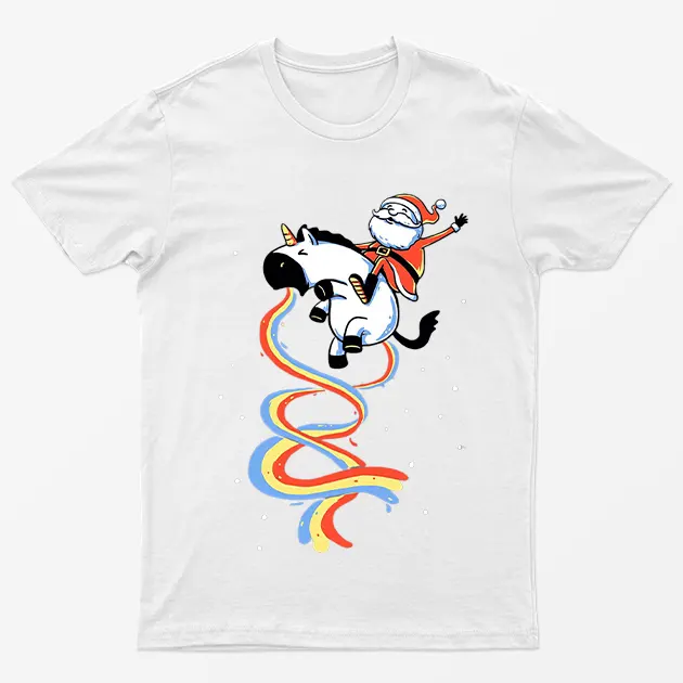Santa Riding Unicorn Funny T-Shirt