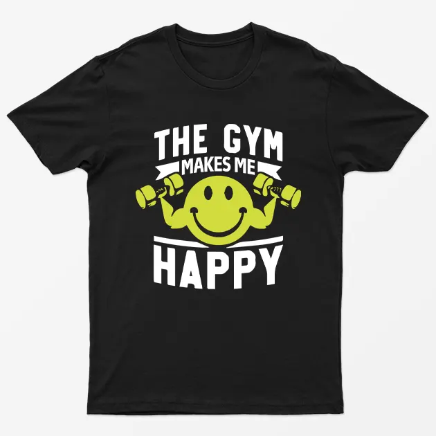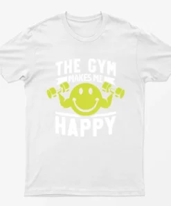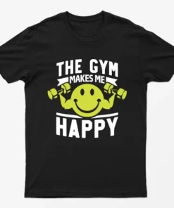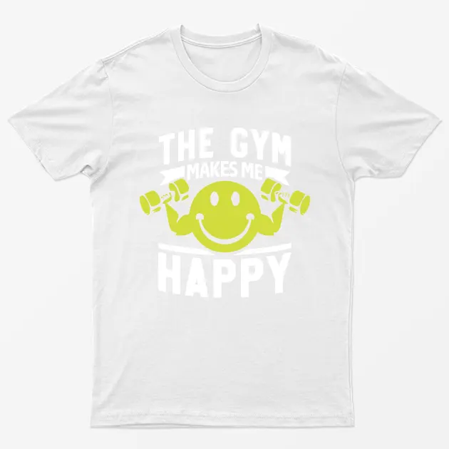 Spread positivity at the gym with our The Gym Makes Me Happy T-Shirt a declaration that the gym is your happy place, making it an uplifting addition to your workout attire.